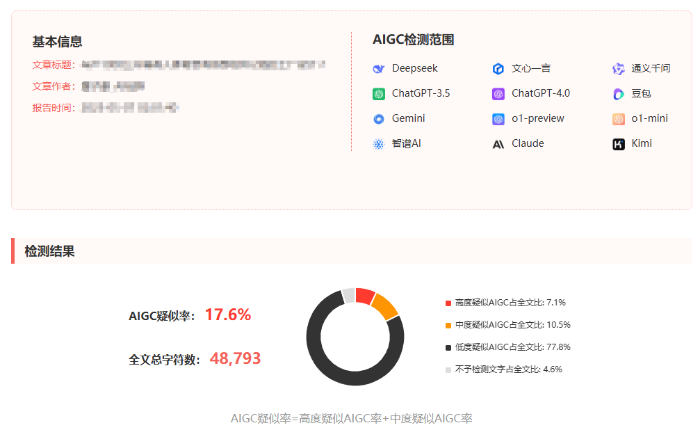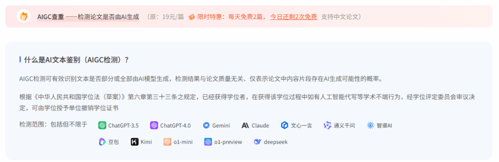 这个每天白嫖两次AIGC查重,不过好像不给查重报告,初稿查过,但是忘记了。