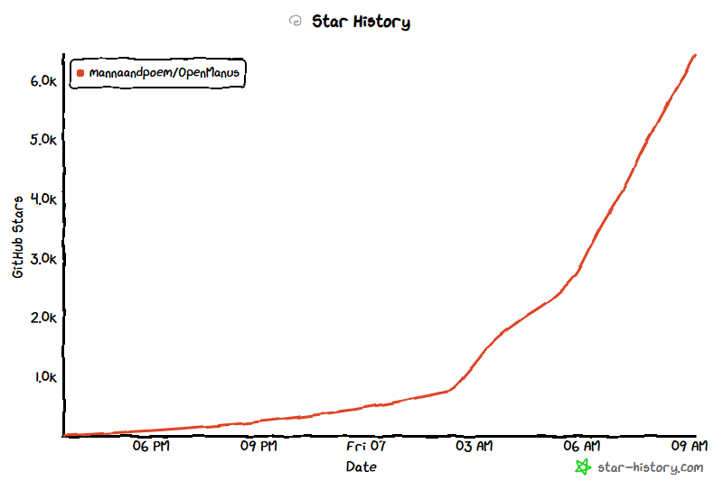 Manus的一夜爆火,许多人想要尝试,但是申请码一直不下来,蒟蒻也是。不过社区已经有大佬三小时“复刻”了manus,并在一天内狂揽8k star。