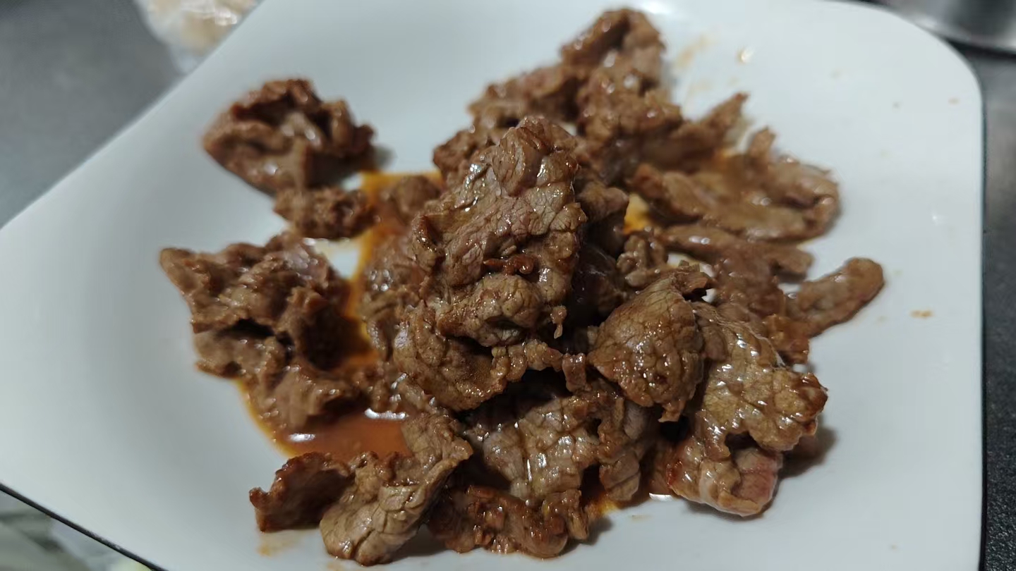 吃后感:味道不错,就是腌制牛肉的时候淀粉放多了,导致炒牛肉的时候极其粘锅